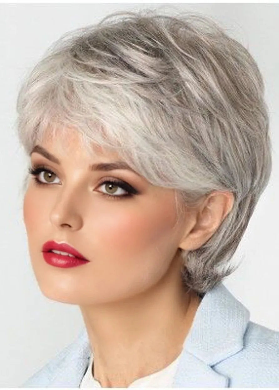 Gray Layered Deeply Wavy Lace Front Wigs Synthetic Hair 10 Inches