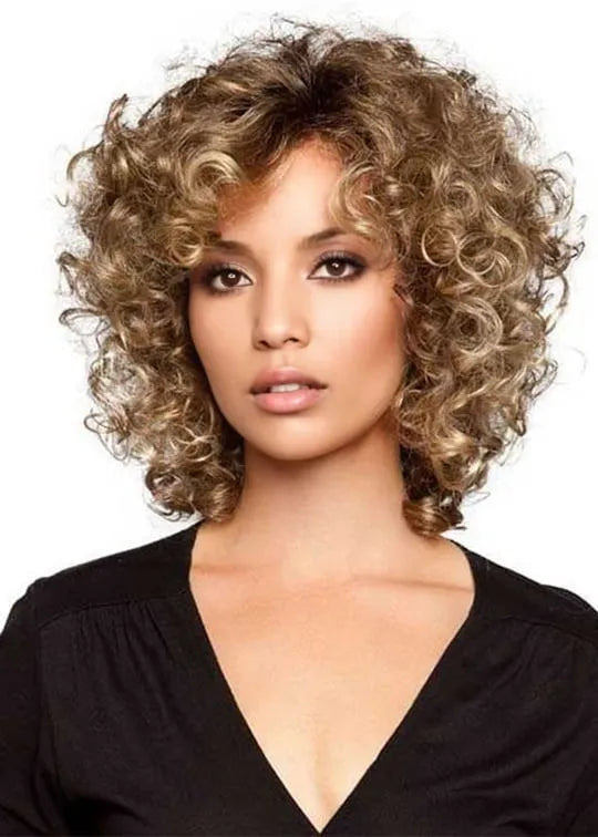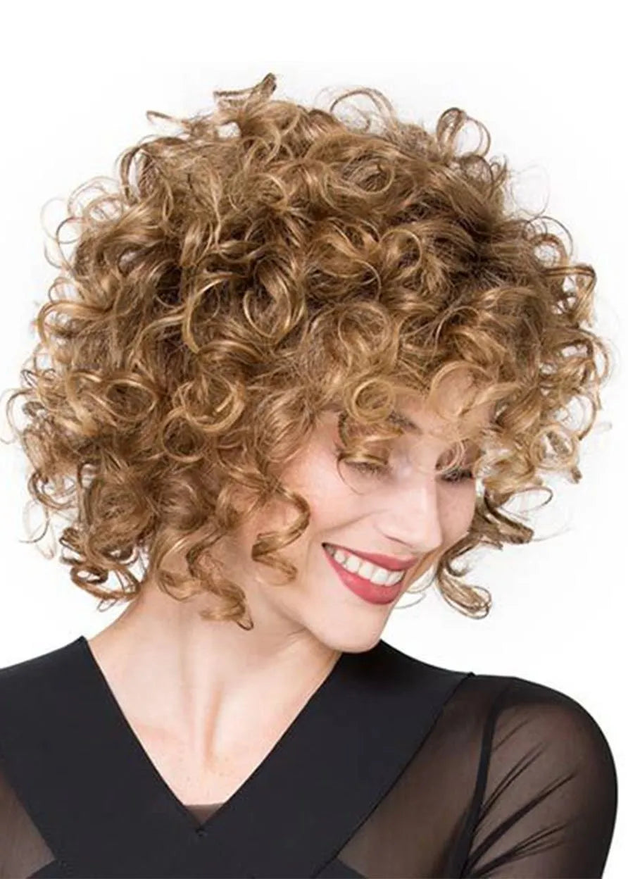 Short Light Brown Afro Curly Synthetic Hair Wig Kinky Curly Lace Front Wig 18inch