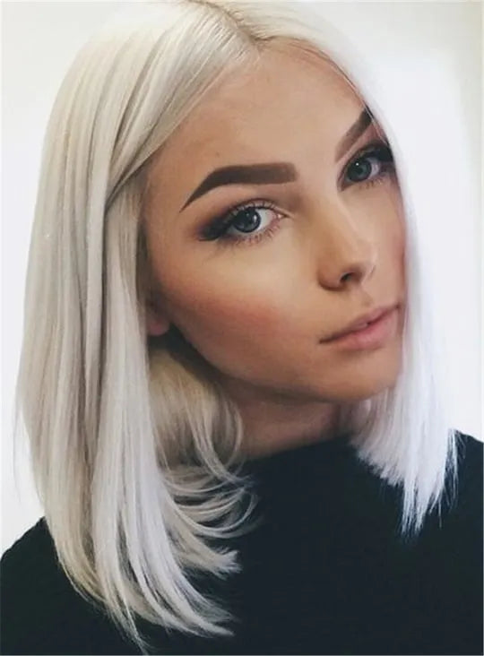 Shoulder Length Middle Part Straight Hairstyle Synthetic Lace Front Wigs 12 Inches