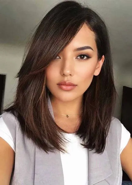 Women's Shoulder Length Bob Style Straight Synthetic Hair Capless Wigs With Bangs 14Inch